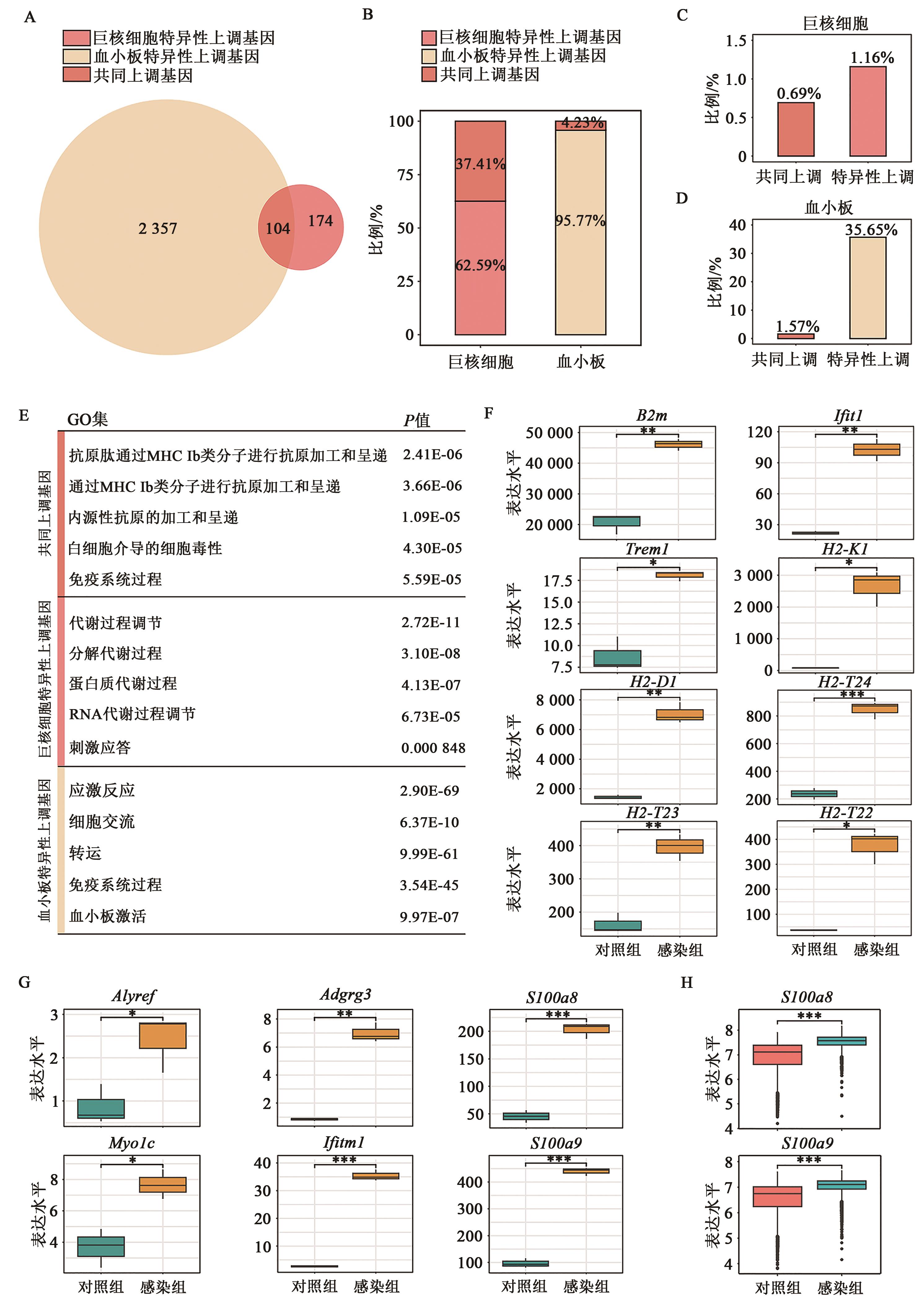 急性感染条件下巨核细胞与血小板转录组变化的对比分析