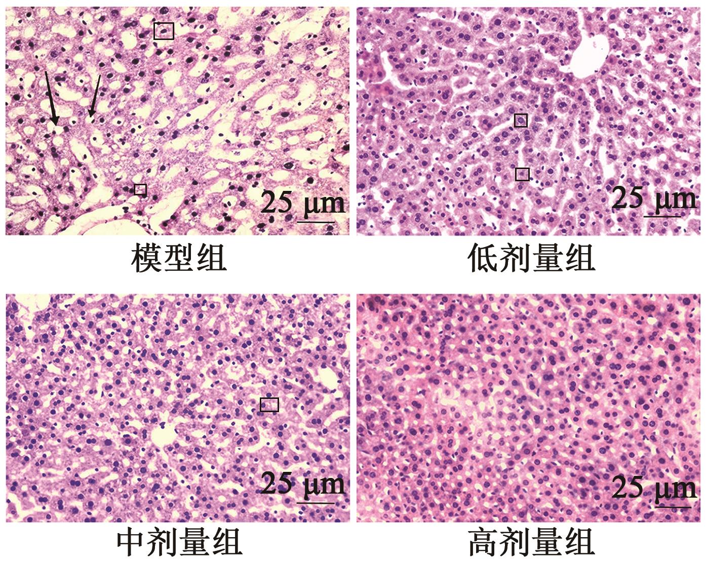 目前,非酒精性脂肪肝病已成为肝脏相关疾病的重要研究对象,我国非酒精性脂肪肝患病率也呈逐年上升趋势。然而,非酒精性脂肪肝的治疗方案比较局限,其中中药在其治疗中发挥了优势。将40只健康雄性小鼠随机分成5组:正常组、模型组、低剂量组、中剂量组、高剂量组,每组8只。除正常组外,其他组按照改良的造模方法高脂喂食35 d制备非酒精性脂肪肝模型(nonalcoholic fatty liver disease,NAFLD)。从第36天起低剂量组、中剂量组和高剂量组(60、80、100 mg·kg-1)将葛根素溶解在生理盐水中进行灌胃,其余组小鼠按照灌胃体积公式灌胃生理盐水。给药16 d后对小鼠血清中甘油三酯(triglyceride,TG)、胆固醇(total cholesterol,TC)、高密度脂蛋白(high-density lipoprotein,HDL)、低密度脂蛋白(low-density lipoproteins,LDL)指标进行检测,并取出小鼠的肝脏制备病理切片染色。研究结果显示,中、高剂量的葛根素对NAFLD模型小鼠的血脂相关指标(TC、TG、LDL)有较显著的降低作用,且高剂量的葛根素降低TG的效果最明显(P<0.01)。研究结果表明葛根素对小鼠非酒精性脂肪肝可能有一定的保护作用。