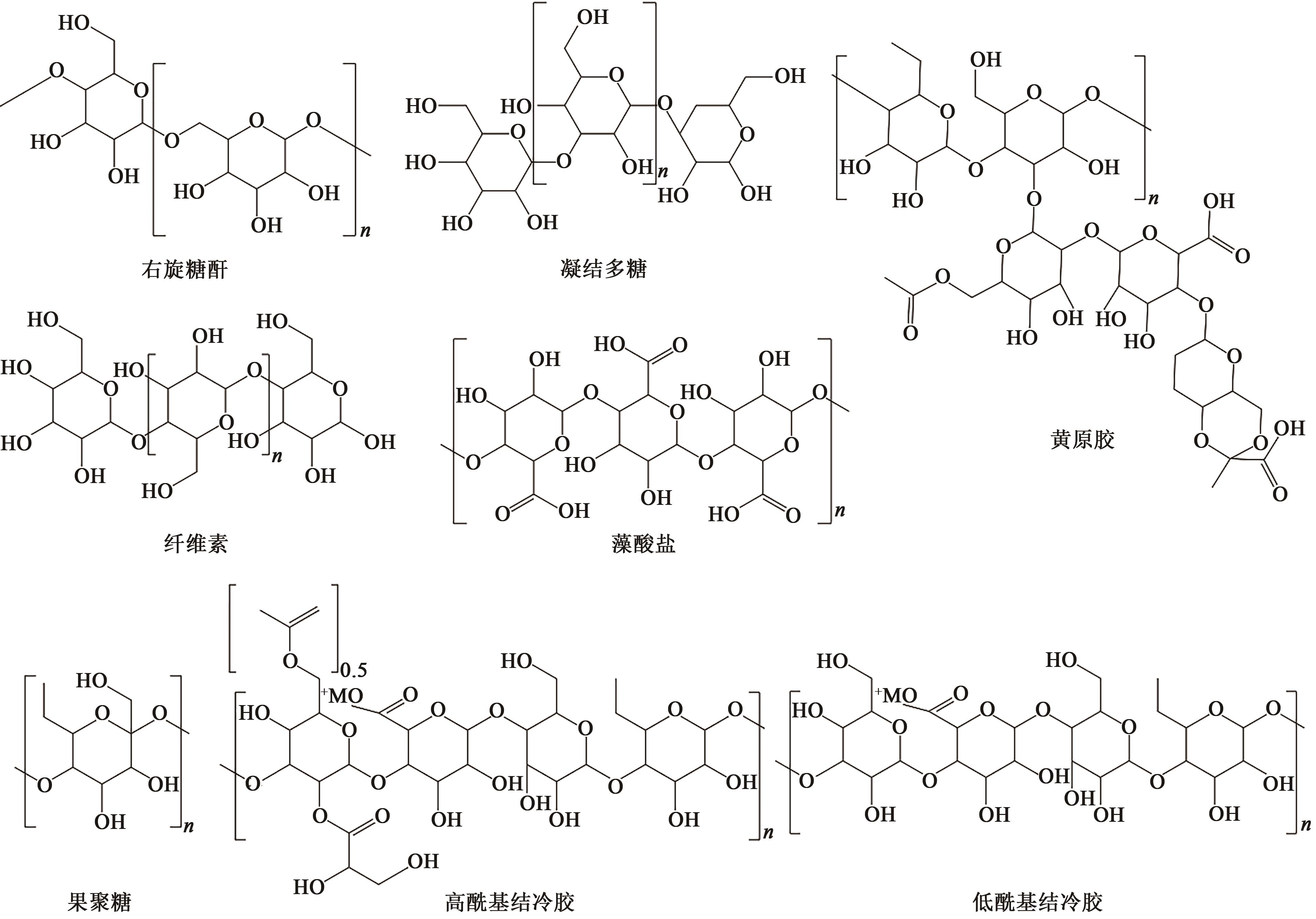 黄原胶 | C33H49O29 | β⁃1,4键连接的葡糖基主链与三糖单位的侧链组成 | Xanthomonas campestris | [ |
