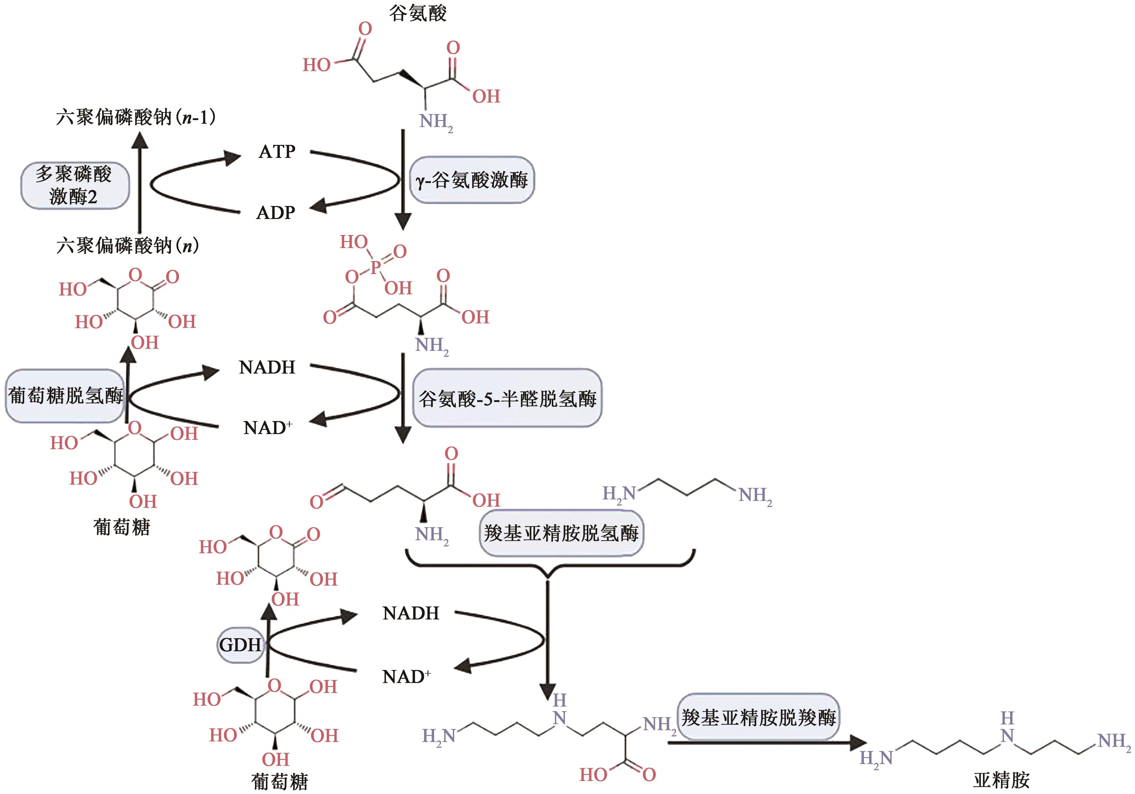 2021年 | 酶(MAT+SAMDC) | 酶催化 | Sam和腐胺 | 3.7 g·L-1 | [ |