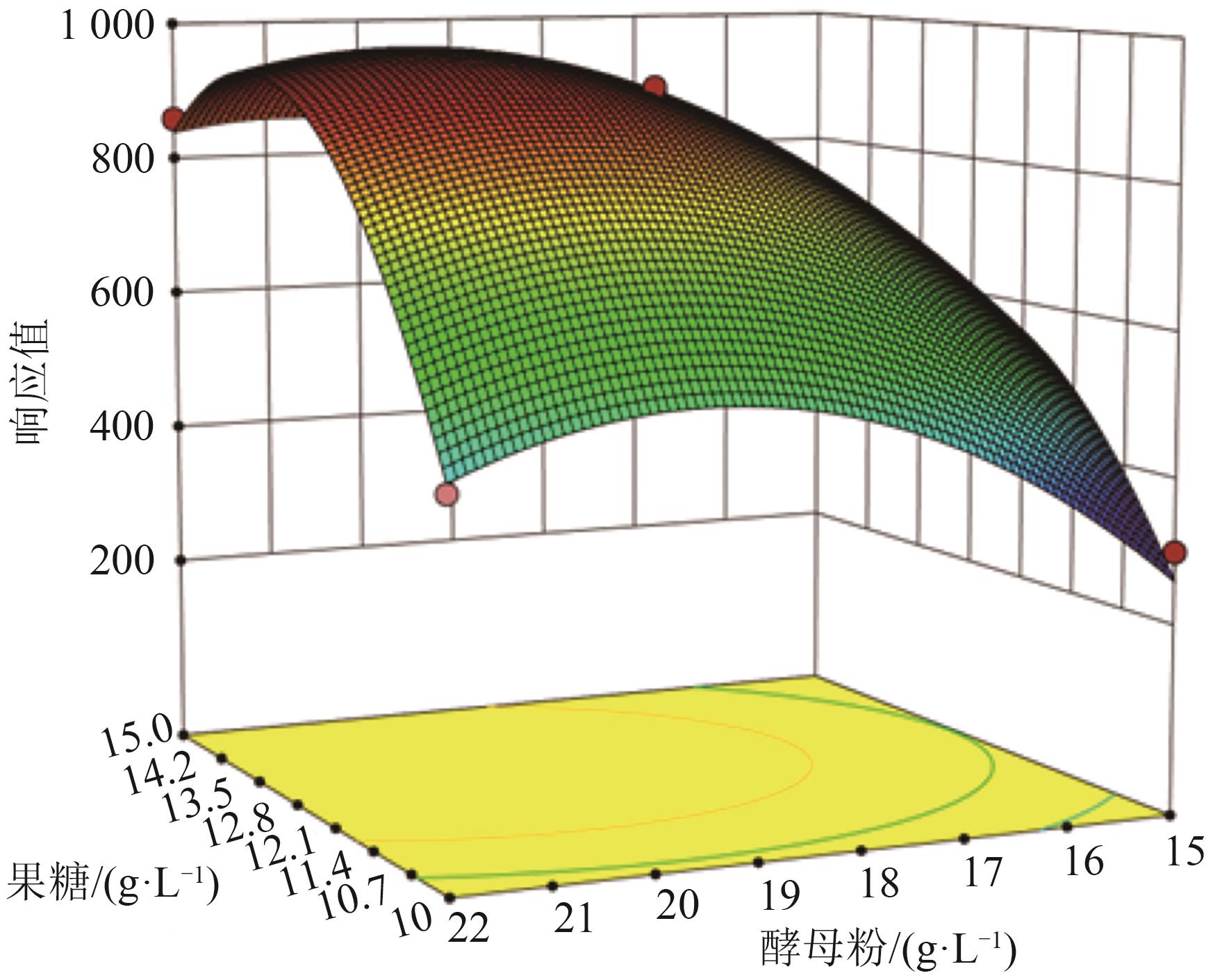 | 编号 | 果糖/(g·L-1) | 酵母粉/(g·L-1) | NaCl/(g·L-1) | MnSO4·7H2O/(g·L-1) | 响应值/(107 CFU·mL-1) |